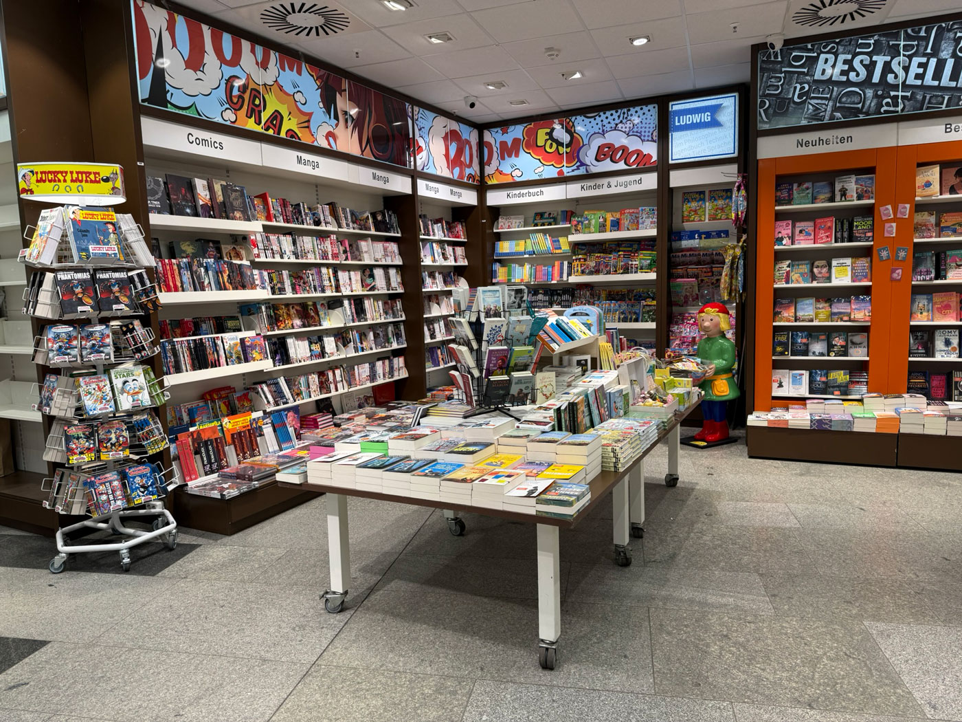 Weil die Buchhandlung Ludwig mit 300 Quadratmetern Verkaufsfläche zu den größten Geschäften im Bahnhof gehört, war der Aufwand hier besonders groß. Zunächst mussten alle Waren und das gesamte Mobiliar entfernt werden, dann die Decken- und Wandverkleidungen. Dann wurde alles wieder hergestellt und eingeräumt. Die rund sechsmonatige Schließzeit wurde in der Buchhandlung für einen Facelift genutzt. Innen und außen wurden Flächen in der Ludwig-Optik neu beklebt, u.a. die Schaufenster am U‑Bahn-Aufgang und in der Passage. Außerdem erhielt das Geschäft neues Mobiliar für die Warenpräsentation. Rechts neben dem Eingang entsteht noch eine gemütliche Lounge mit Sitzgelegenheiten, die zum Verweilen und Lesen einladen soll. Auch kleinere Veranstaltungen wie Signierstunden sin dem Unternehmen zufolge in Zukunft möglich.