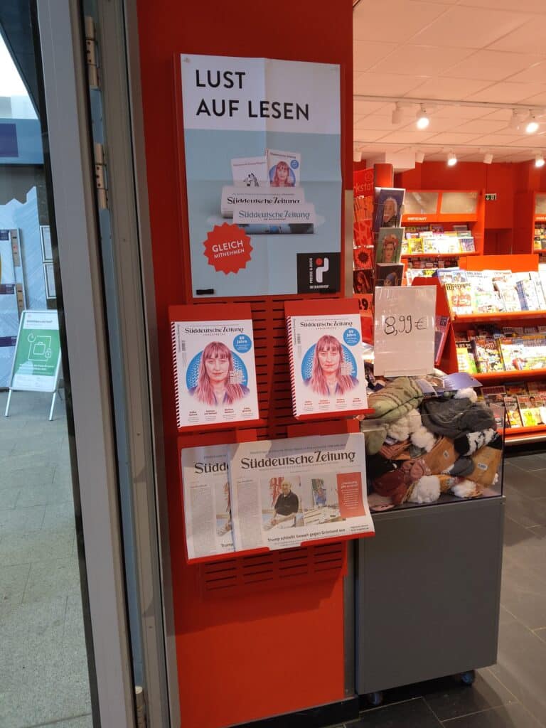 Seit dem 19. Januar und noch bis zum 8. Februar 2026 rücken Bahnhofs- und Flughafenbuchhandlungen in ganz Deutschland die Süddeutsche Zeitung und die SZ Langstrecke in den Fokus ihrer Kunden. Hintergrund ist eine Sortimentsaktion, die der Süddeutsche Verlag aus München alljährlich zum Jahresbeginn gemeinsam mit dem Verband Deutscher Bahnhofsbuchhändler durchführt.