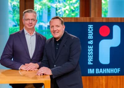 Involviert waren neben dem Bahnhofsbuchhandel auch Mitarbeitende der Deutschen Bahn sowie aus Medien- und Vertriebsunternehmen. Stellvertretend für die Projektgruppe sprachen neben Torsten Löffler: Sarah von Nordheim, Leiterin Vertrieb Commercial der DB Infra GO AG, Thomas Weingarten als Sprecher der Projektgruppe Travel Retail im Medienverband Freie Presse, und Matti Eckert Leiter Category Management in der Unternehmensgruppe Dr. Eckert.